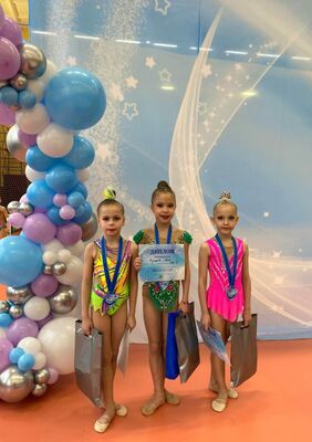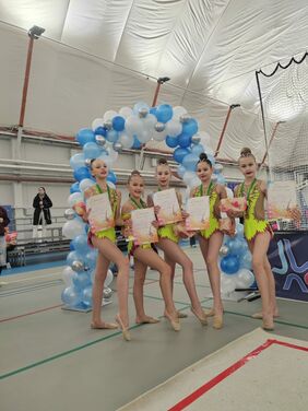 В групповых упражнениях среди гимнасток 2017 года рождения: 1 место заняла команда в составе: Савушкина Варвара, Бажулина Вероника, Цветкова Василиса, Шувалова София, Щепелина Алексия, Астанина Екатерина.